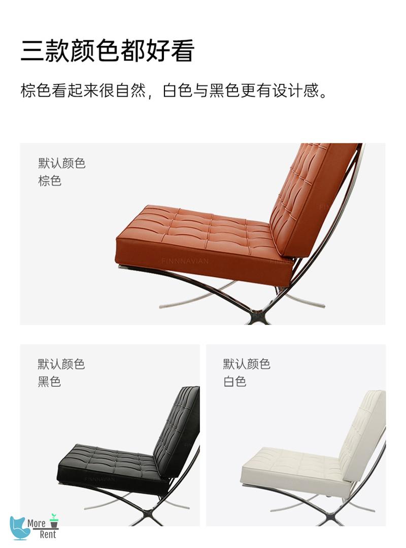 巴塞罗那椅极简单人沙发 现代简约设计师全真皮休闲椅,采用北欧简约全真皮材质,不锈钢一体式折弯焊接结构设计而成,宽大舒适的座面,极具皇室风范。