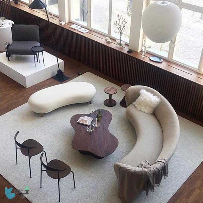 异形半圆月亮沙发采用实木框架结构,稳固结实高承重,采用高回弹海绵,坐杆柔软舒适,户型曲线设计,创意半圆外形,简约时尚,适用于各种商业会展、下午茶、会客等多种场景。